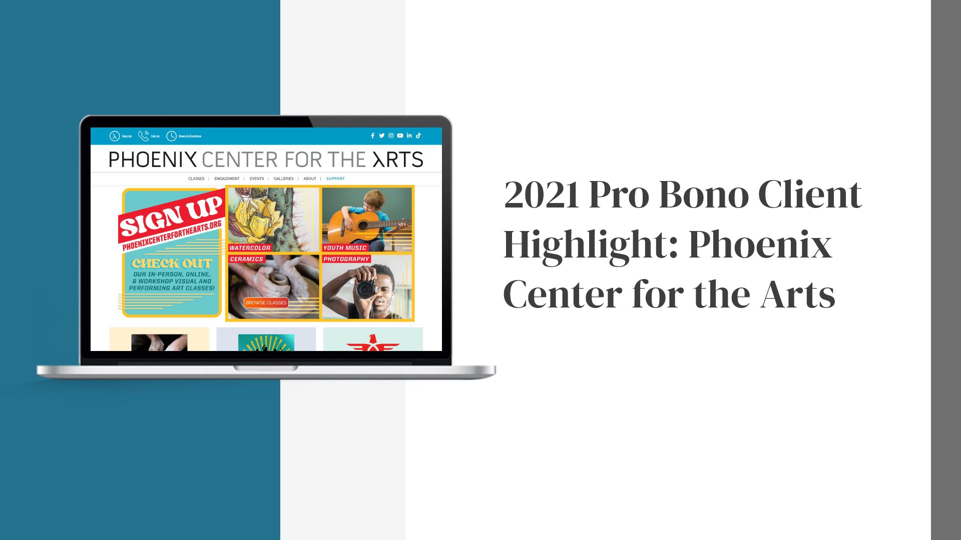 As we introduce this year’s search for our next pro bono client, we want to showcase our current client and what we’ve been able to accomplish for them in this past year. We are thankful to have Renee Aguilar from Phoenix Center for the Arts share her experience with us!